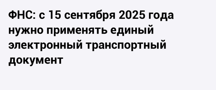 ФНС утвердила формат унифицированного электронного транспортного документа для перевозок. Его применение станет обязательным с 15 сентября 2025 года, а данные о перевозках будут передаваться в государственную информационную систему. Законопроект № 158543 размещен на официальном портале. Для подтверждения соглашения о перевозке в рамках прямого смешанного сообщения ФНС разработала соответствующий формат единого транспортного документа. Необходимость введения данного документа обусловлена вступлением в силу с 1 сентября 2025 года Федерального закона от 08.08.2024 № 288-ФЗ. В соответствии с этим законом, прямые смешанные перевозки могут осуществляться исключительно на основании единого транспортного документа, что распространяется на перевозку грузов, пассажиров и багажа. Договор о перевозке в прямом смешанном сообщении будет удостоверяться унифицированным транспортным документом, формат которого и был разработан ФНС. Его применение станет обязательным с 15 сентября 2025 года. Транспортный документ может быть представлен как в бумажном, так и в электронном виде. При этом, электронные документы подлежат обязательной передаче в государственную информационную систему перевозочных документов.
